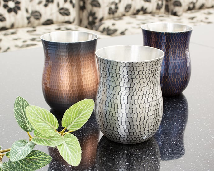 銅には殺菌作用がありイオン効果で水を浄化します。銅の花器は花を長持ちさせるのも有名。銅で出来た急須・やかんなどを使用するとは、旨味を引き立ててくれます。錫の酒器は、イオン効果で酒をまろやかに美味しくします。