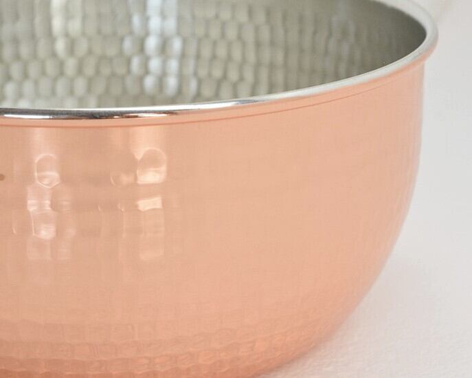 銅の器は、使いこむほどに味わい深い艶を出し、割れ物でない為壊れないので永く愛用できる。落下などで破損しても再生する事が可能なメンテナンスが安心であるのもうれしい。代々使える一生モノの逸品です。