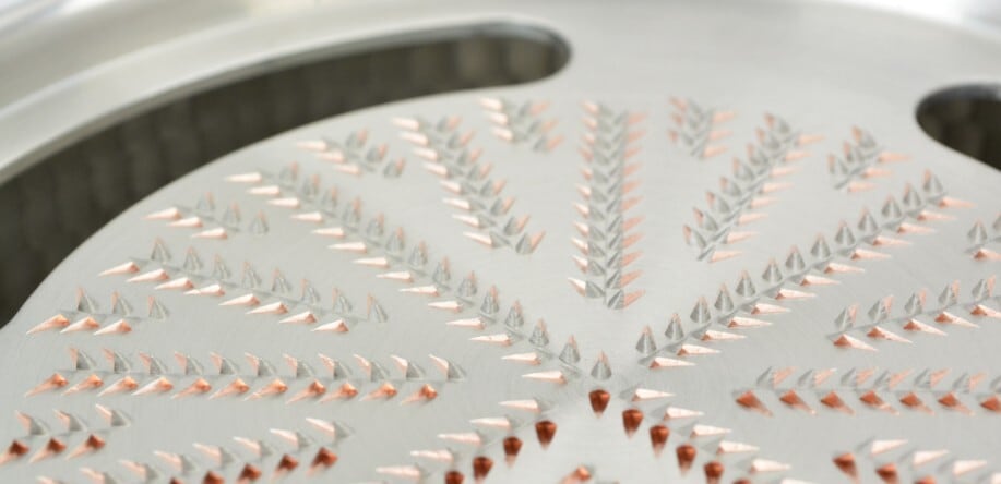 銅を鎚(つち)で打ち起こす方法です。立体的な形は一枚の平らな銅板を鎚で打つことを繰り返し出来上がります。熟練工による高い技術はやかんのように注ぎ口の部分まで打ち出すことのできます。